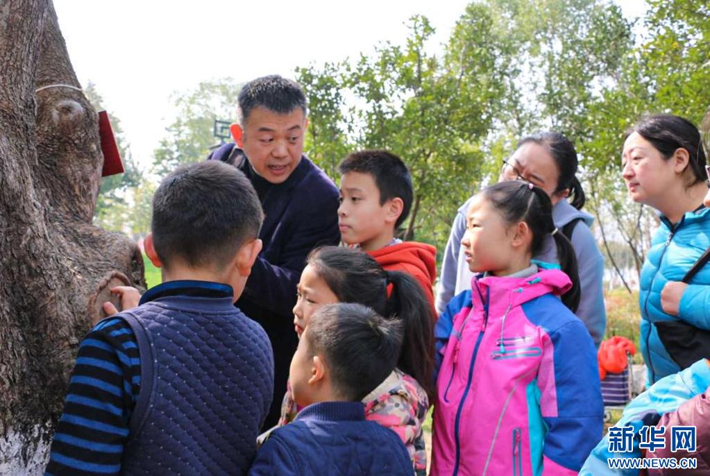 图为太阳集团122cc志愿者在沙湖公园开展“湿地自然教育公益课堂”活动。新华网发