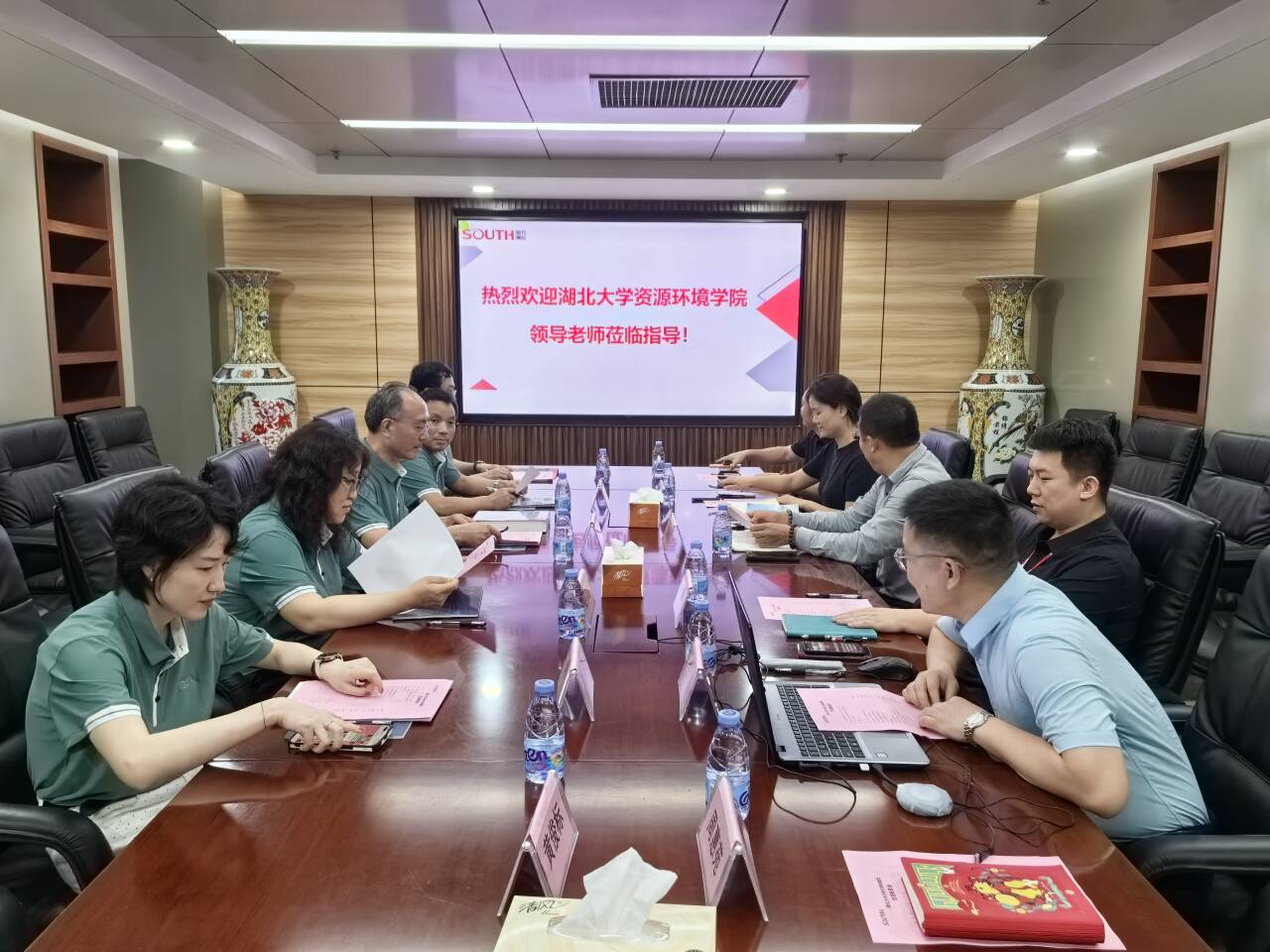 在广州市南方测绘集团,公司党委一行参观了南方测绘体验中心,观看南方测绘虚拟仿真教学展示,并就测绘和地理信息教学以及公司新获批的“无人机应用技术”微专业建设进行深入探讨,同时听取相关工作人员对公司自成立以来在校企共建、实习基地建设、科技成果转化等方面取得的成绩的介绍。在座谈会上,公司党委书记黄月辉向南方测绘介绍了公司的情况,公司领导班子同南方测绘集团教育部门负责人对专业和课程建设深入交流,对今后公司与集团在资源环境专业人才培养、团队建设、专业发展方面的产教融合、互利共赢方面达成一致。