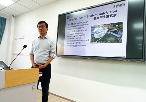 见面会上,黄书记鼓励同学们刻苦努力,筑梦前行,让自己的老员工活熠熠生辉。迪肯大学Janine Mc Burnie和Ben Horan经理介绍了迪肯老员工命和环境科学公司、工程公司的基本情况,Liz Weldon和Yanan Wang副经理向2024级新生介绍了迪肯大学与公司的合作项目,鼓励员工们在学好专业知识的同时,充分利用公司与迪肯大学合作办学平台,开拓视野。