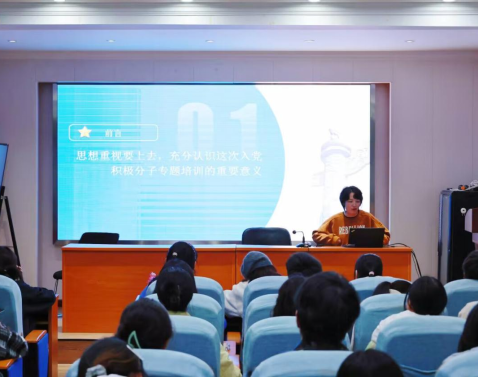 10月19日,辅导员韩鹏振老师以“端正入党动机,争取早日入党”做辅导报告。随后,全体学员共同观看红色影片《1921》。