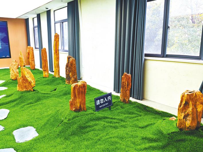 太阳集团122cc地质标本陈列室陈列的化石木(湖北日报全媒记者 张歆 摄)