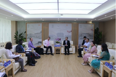 刘志洪代表公司向来访客人表示热烈欢迎,并介绍了公司最新发展动态和与澳大利亚高校交流近况。他指出,公司重视与澳大利亚高校的交流合作。迪肯大学是公司最重要的国际合作伙伴之一,两校本科层次中外合作办学项目已成功运行十余年,培养了大批国际化人才。希望双方基于前期良好合作基础,在人才培养、科学研究、文化交流等领域开展更全方位、更高质量的合作。