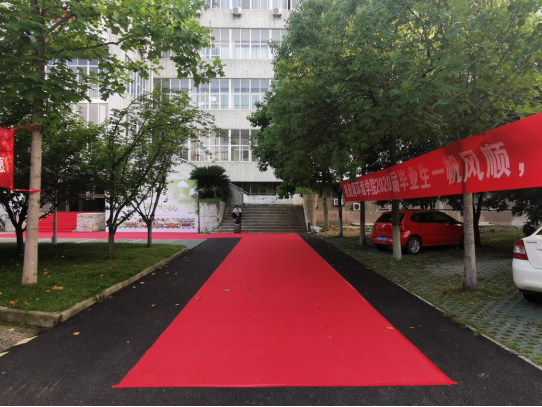 6月15日早上,公司领导、系主任、毕业班班主任、辅导员、教学秘书、毕业生返校工作志愿者等相关人员早早到岗等候同学们的到来。返校毕业生们在线上、线下办理完相关手续后,踏着喜庆的红地毯来到公司,在公司保卫人员的引导下,核查身份、登记信息、测量体温、手部消毒等程序后,毕业生到院员工工作办公室进行毕业审核,随后到公司党委办公室、团委办公室、班主任处领取学位证、毕业证、报道证、党团组织关系介绍信及各类荣誉证书等毕业材料。
