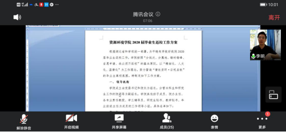图为公司6月12号上午通过腾讯会议召开《资环2020届毕业生返校工作协调会》