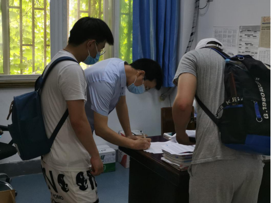 图为公司返校毕业生进院后进行登记