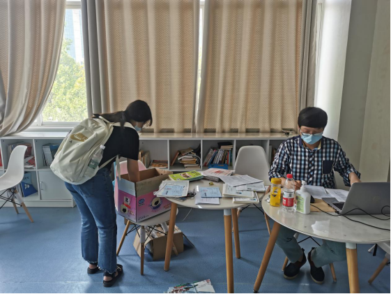 图为公司党委副书记、16环国班主任李明老师为毕业生发放毕业相关材料