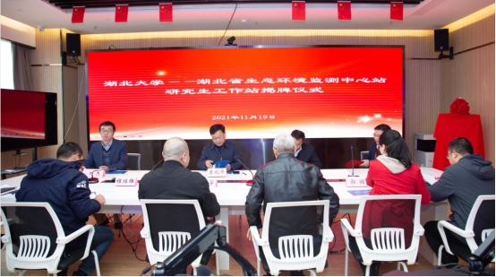 2021年11月19日,太阳集团122cc——湖北省生态环境监测中心站研究生工作站在湖北省生态环境监测中心站揭牌,会议由湖北省生态环境监测中心站副书记、副站长宋国强主持,省站党委书记、站长许克学、省站总工程师程继雄、生态室主任望志方、环境监测分析测试中心主任郭丽、执法与应急室主任柯鹏振,公司研究生院经理李兆华教授、公司经理彭宇教授、代理副经理刘杰教授、工作站联系人刘海教授出席活动。