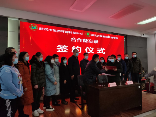会议期间,公司经理彭宇教授与武汉市生态环境科技中心主任李利桥共同签署了合作备忘录,为双方在人才培养、科学研究和生态环境管理创新等方开展全面合作奠定了基础。李兆华经理和张颉副局长共同为研究生工作站揭幕。在彭宇经理的主持下,李兆华经理为徐栋副主任颁发了外聘研究生导师聘书。在座谈交流环节,李兆华经理回顾了双方近二十年的合作发展历程,提出了科普宣教、双碳研究智库和人才联合培养的具体建议,强调用科学精神讲好武汉故事,力争为2022年《湿地公约》第十四届缔约方大会的召开和碳达峰的实现做出贡献。张颉副局长充分肯定了双方的历史合作基础和深厚的友谊,并进一步强调了落实合作发展的必要性和合作机制保障的重要性。双方在双碳研究、大气治理、湿地生物多样性调查、水体生态修复等方面达成了互为支撑、协同发展的共识。双方一致认为十四五期间以共建研究生工作站为契机,加强合作,将为武汉市生态环境的科学研究和保护管理做出更大的贡献。