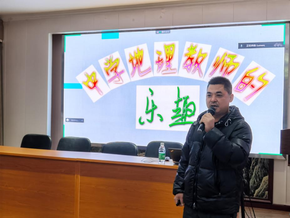 吴迪老师以“中学地理教师的乐趣”为题,结合自身执教从教的经历,向同学们娓娓讲述了作为一名中学地理老师带领员工参加国际地理奥林匹克竞赛、在校园内观测天文现象、赴大别山等地开展地质考察、开展中日“小大使”国际交流、参加“课本剧”演出等有趣的故事。吴迪老师谈到,“作为地理老师,除了课堂内的教学,还有很多事可以干。”他勉励与会同学要积极思考、热爱生活,在工作和生活的点滴中探索和发现地理学的魅力,做一名能唤起员工对地理学习热情的教师。