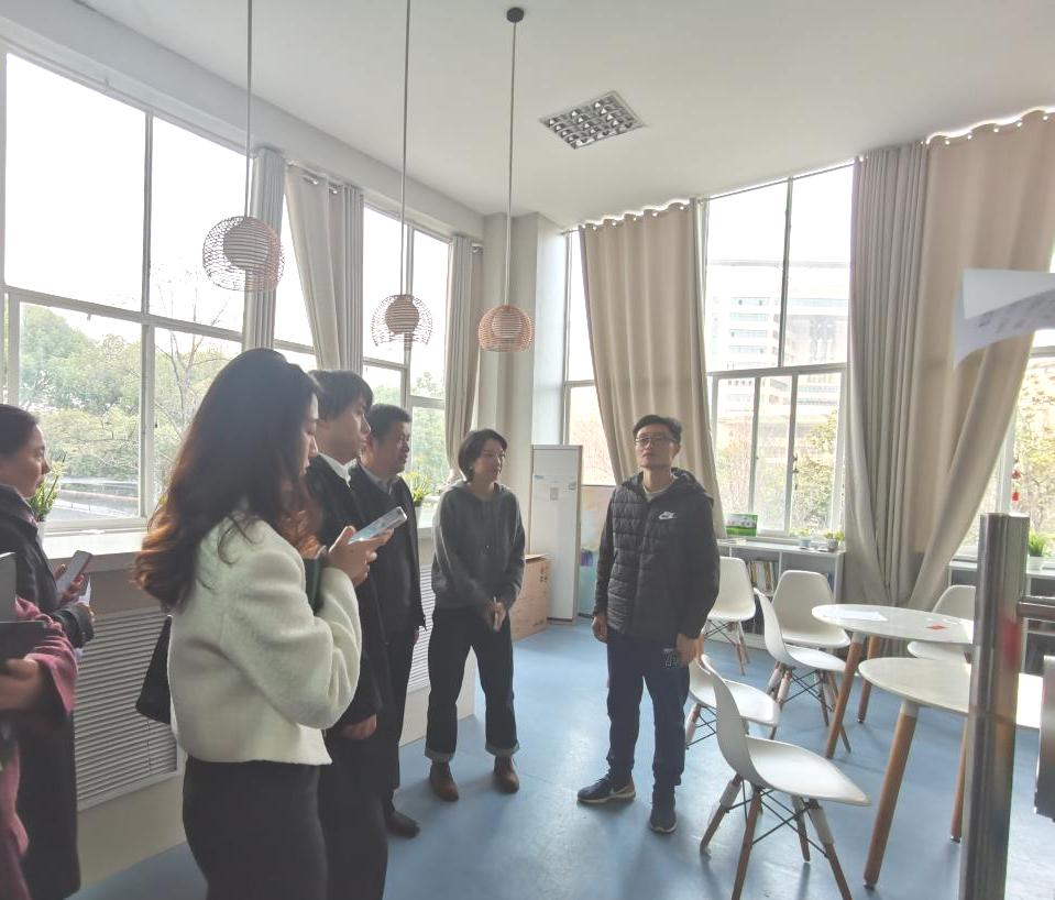 座谈会结束后,喻平书记一行在公司老师的带领下参观了公司“芯宠辅导站”办公室和地下员工活动室。
