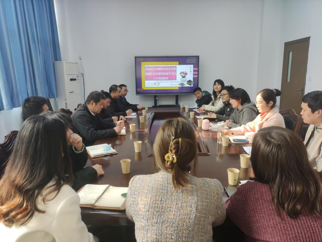 3月2日下午,武汉铁路职业技术公司铁道机车车辆公司党总支书记喻平、武铁职学工部副部长王舒等一行莅临公司调研交流相关工作。太阳集团122cc公司党委副书记李岚、辅导员李彦伯、邓琪、韩鹏振参加座谈会。