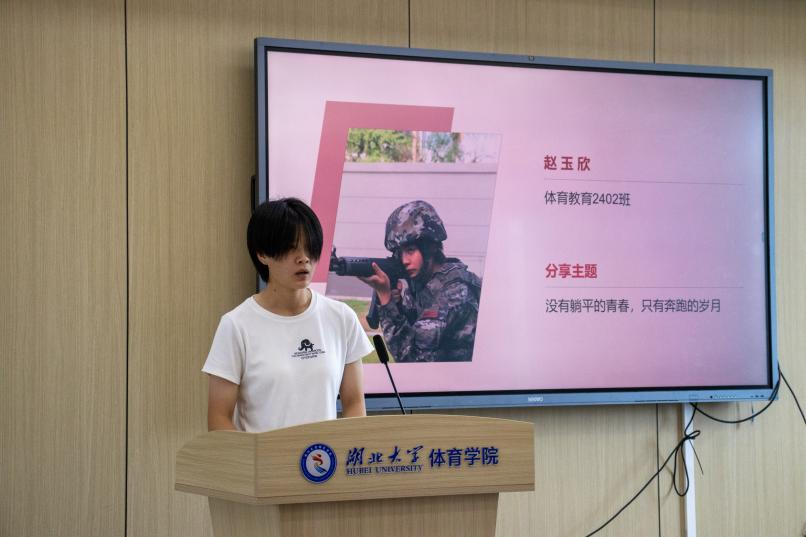 来自体育公司的赵玉欣学姐则分享了自己在武警部队的成长感悟。她坦言,初入军营时曾因“三点一线”的单调生活而迷茫,但在领导和班长的鼓励下,她逐渐明白“军人的价值不仅是靠轰轰烈烈来证明”。通过反复练习站岗执勤、提升业务能力,她在日复一日的坚守中读懂了“责任”与“担当”。