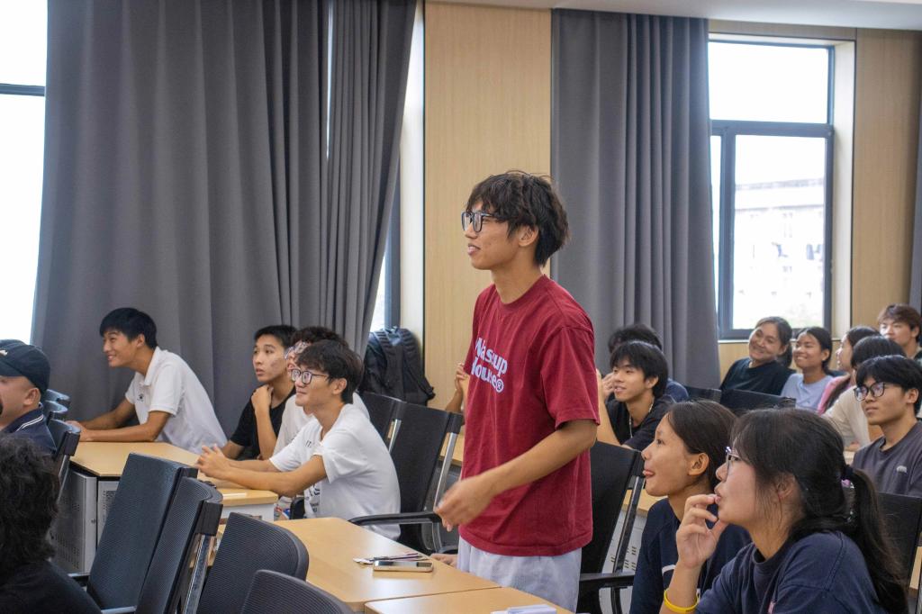 互动环节中,同学们围绕入伍政策、军旅生活对学业影响等问题踊跃提问,学长学姐一一细致解答。随后的党史知识答题环节气氛热烈,同学们在互动中深化了对党的历史与精神的理解。