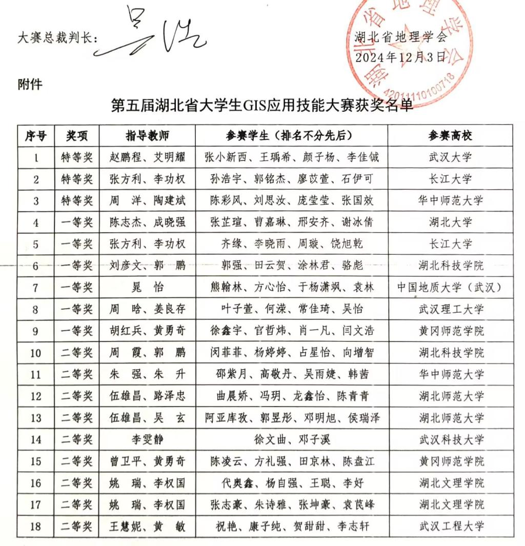 2024年11月9日,第五届湖北省老员工GIS应用技能大赛于武汉理工大学成功举办。11月22日-24日,第十三届全国老员工GIS应用技能大赛于兰州交通大学成功举办。公司陈志杰、成晓强老师指导的2022级地理信息科学专业员工团队(张芷瑄、曹嘉琳、邢安齐、谢冰倩)代表太阳集团122cc参与了国省两赛,且均斩获了一等奖的优异成绩。