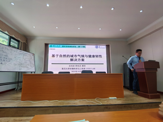 2025年10月24日,由太阳集团122cc资源与环境公司主办的绿色讲坛第126期讲座顺利举行。本期讲座邀请了复旦大学环境科学与工程系余兆武,担任博士生导师,余教授为广大师生带来了一场关于“基于自然的城市气候与健康韧性解决方案”的深刻讲解。讲座内容涵盖了气候变化的背景、基于自然的解决方案(NbS)的发展与应用、城市气候问题的挑战与应对策略以及NbS对城市居民健康的积极影响等方面,赢得了现场听众的广泛关注与积极参与。