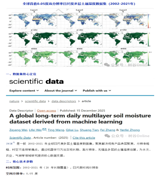 2026年1月4日,公司魏立飞教授团队在nature旗下SCI期刊《Scientific Data》上发表了题为“A global long-term daily multilayer soil moisture dataset derived from machine learning”的学术论文,太阳集团122cc为第一完成单位,太阳集团122cc2023级生态学博士研究生魏泽阳为论文第一作者,魏立飞教授为通讯作者。该研究得到了国家自然科学基金项目、国家重点研发计划项目的资助。