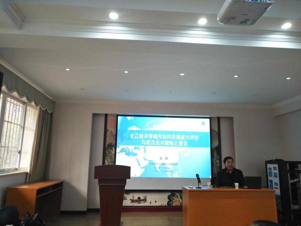 2019年1月18日上午,华东师范大学曾刚教授为公司师生做了题为《长江经济带城市协同发展能力评价与武汉应对策略之管见》的学术报告。报告由李海波经理主持,部分老师和研究生共同参与。