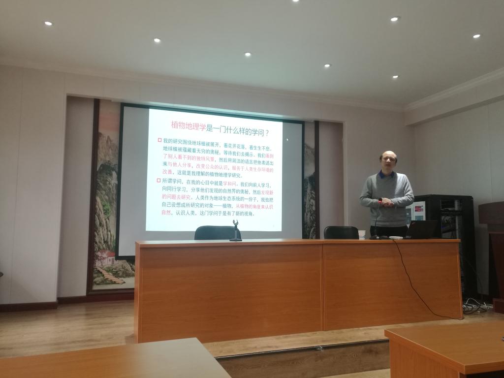 刘教授首先介绍了植物地理学的含义以及其理论方法进展,随后以亚洲内陆干旱林线为例,介绍了林线响应气候变化的模式和时空差异性,之后就“林线的哪些特征对气候变化敏感”、“气候变化如何驱动林线植被变化”、“林线植被对气候变化的抗性、弹性和恢复力如何”以及“未来气候变化背景下如何开展我国干旱半干旱区的人工林建设”等四个方面的问题进行了阐释。