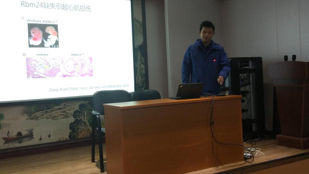 张老师的报告以人类健康作为出发点,以小鼠的压力测试作为主要汇报内容,图表结合,生动形象地阐明了RNA在人体健康中的重要作用。“喜伤心,怒伤肝”,一句传统的中医理论被张老师在讲座过程引入,将严谨精密的现代医学与博大精深中国传统文化完美结合,风趣幽默的语言,不时赢得台下一片掌声。