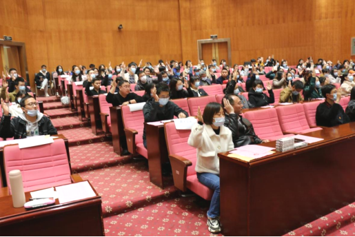 4月7日晚7点,中共太阳集团122cc委员会在公司会议中心思睿厅召开党委换届选举党员大会,公司全体师生党员参会,公司党委副书记李明主持会议。