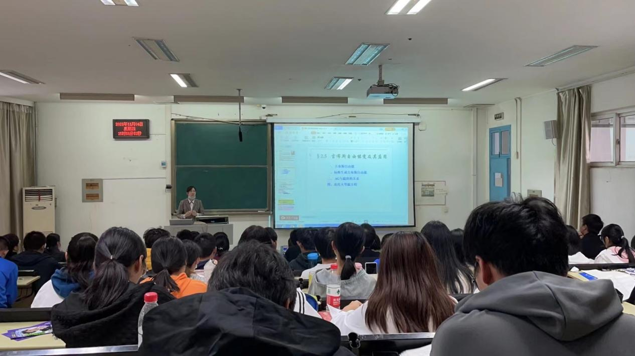 首先,温丽莲讲师向老师和同学们复习了热力学、热化学的基础知识。通过书面文字的讲述和幻灯片的详细解析介绍了热力学第一定律和盖斯定律,然后温老师通过图片,形象地让大家了解了定律原理。其次,温老师讲解课程的重难点——熵变、焓变和吉布斯自由能变的关系,用简单易懂的语言介绍了几种能变的计算方法和范托夫等温方程,讲解了如何判断化学反应方向。最后还与同学们进行了充分互动,不仅活跃了课堂氛围,而且巩固了课堂知识。